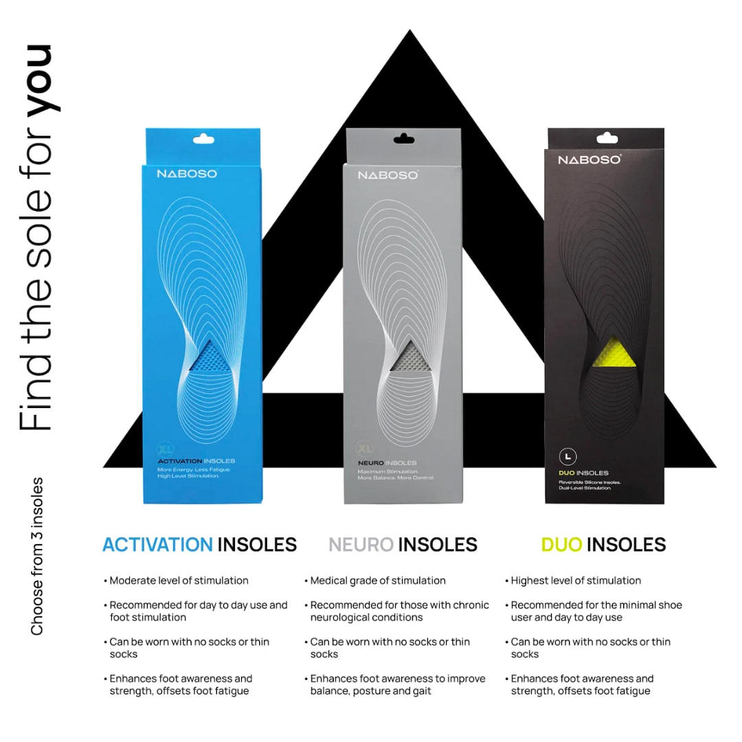 Naboso Activation -pohjallinen on Naboso Insoles -tuotevalikoiman suosituin pohjallinen. Koe, miltรค tuntuu olla yhteydessรค jalkoihisi koko pรคivรคn, tรถissรค ollessasi tai treenatessasi. Naboson pohjalliset ovat ainoat sensoriset pohjalliset markkinoilla, jotka voivat parantaa jalkojen voimaa ja tasapainoa.
