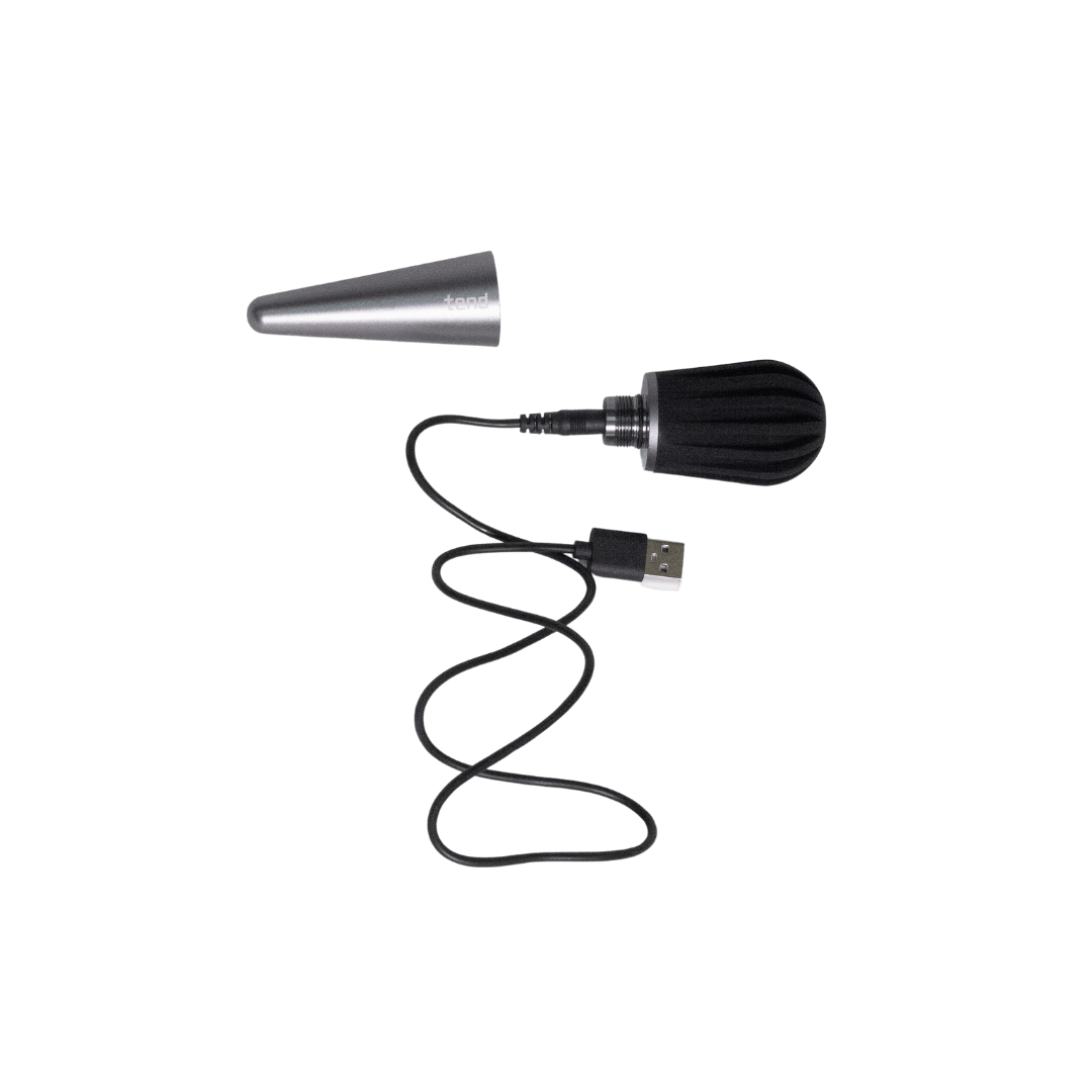 Pakkaus sisรคltรครค Tend Deep -laitteen, pehmeรคn suojapussukan ja laturin.